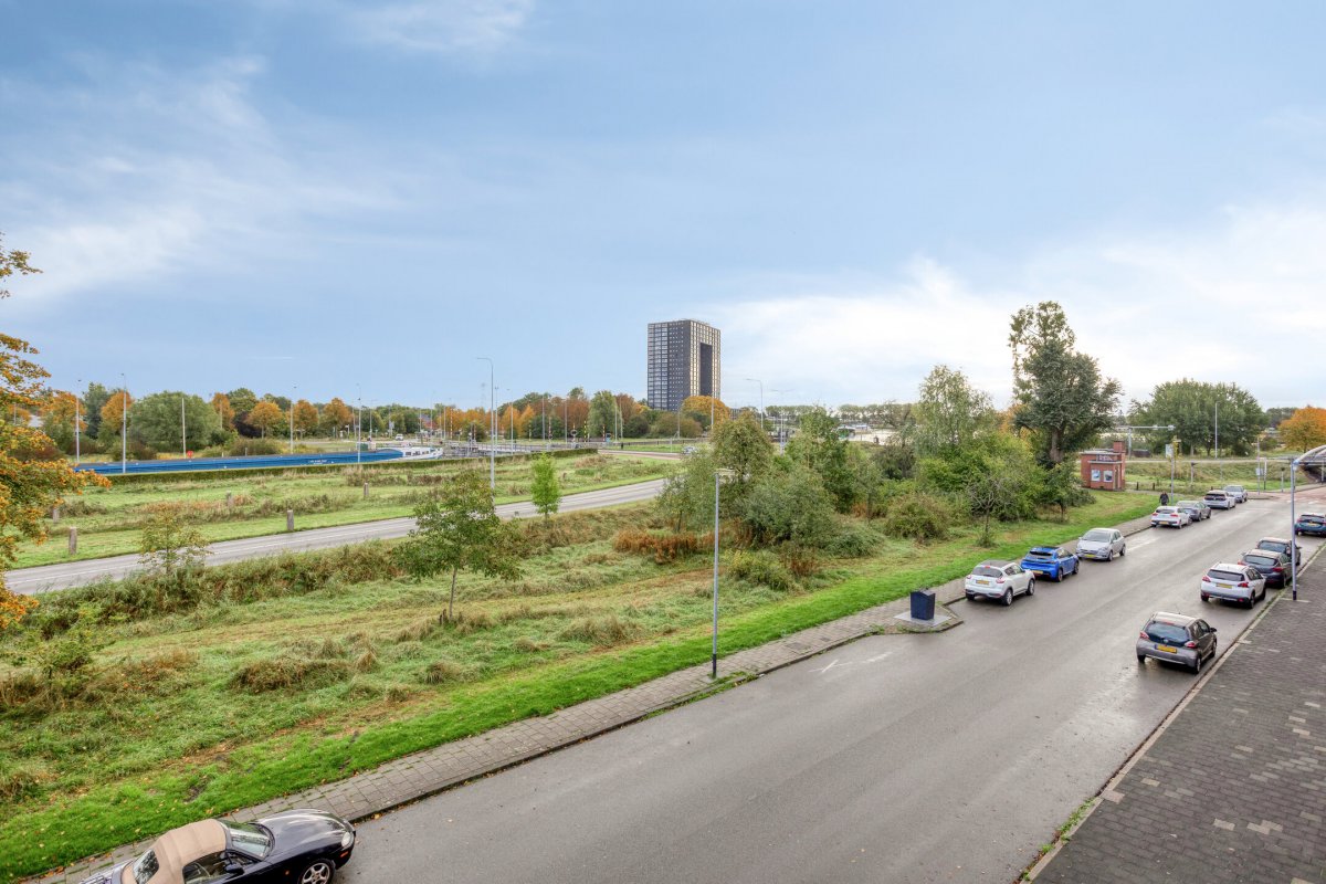 Tweede verdieping: woningentree, hal, toilet, zeer ruime en strakke woonkamer van 39m² met schitterend uitzicht, keuken met inbouwapparatuur, wasmachineaansluiting en toegang tot het balkon aan de achterzijde, badkamer met douche en wastafel, gang, 2 slaapkamers van respectievelijk 11m² en 10m², beide voorzien van een inbouwkast. Vanuit de slaapkamer aan de voorzijde is het balkon aan de voorzijde te bereiken.