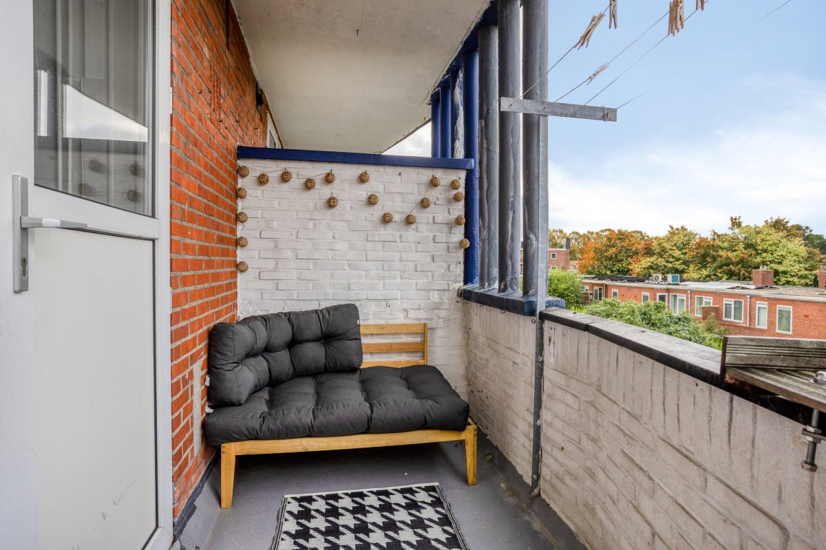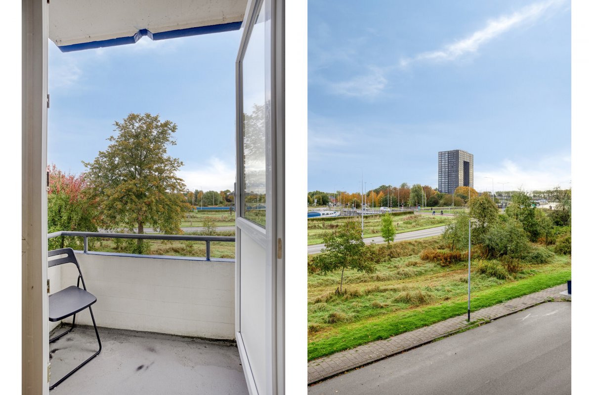 Het balkon aan de voorzijde is ca. 2m² en is gelegen op noordoosten met schitterend uitzicht over de Oostersluis bij het Van Starkenborghkanaal. Het balkon aan de achterzijde is ca. 5m² en ligt op het zuidwesten en heeft vrij achteruitzicht. Aan de achterzijde van het complex is de eigen fietsenberging van 5m² via een brandgang te bereiken.