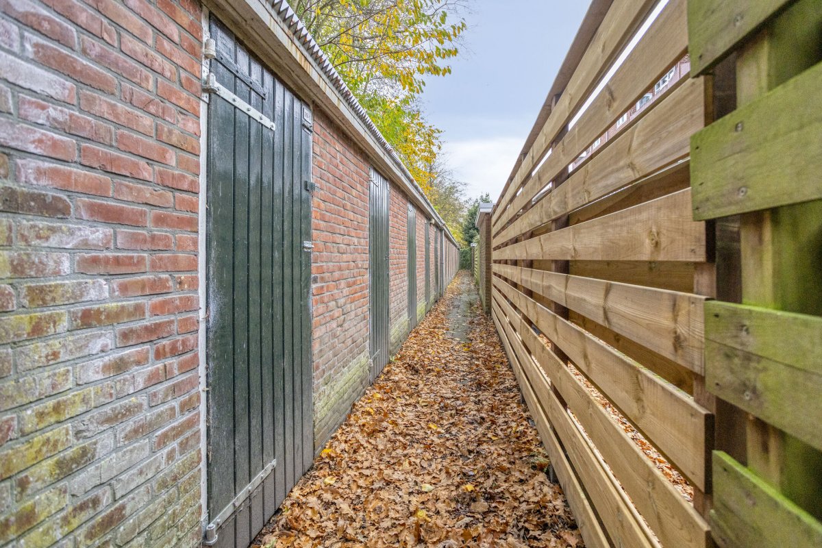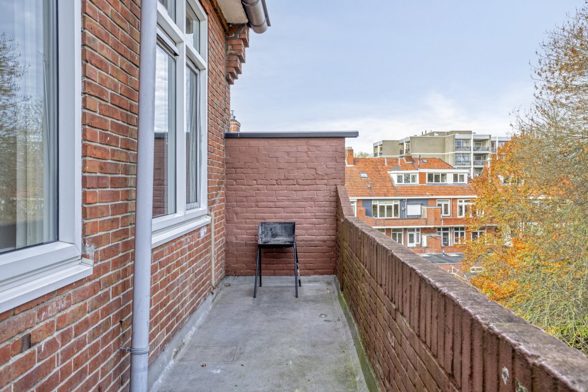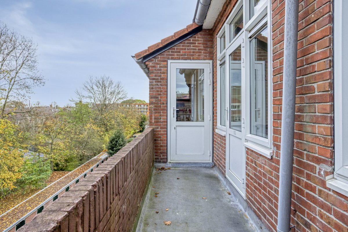 Het ruime balkon is gesitueerd op het noordoosten. Vanuit de keuken is het balkon toegankelijk. Achter het complex bevindt zich de stenen berging, welke toegankelijk is via een afgesloten achterom.