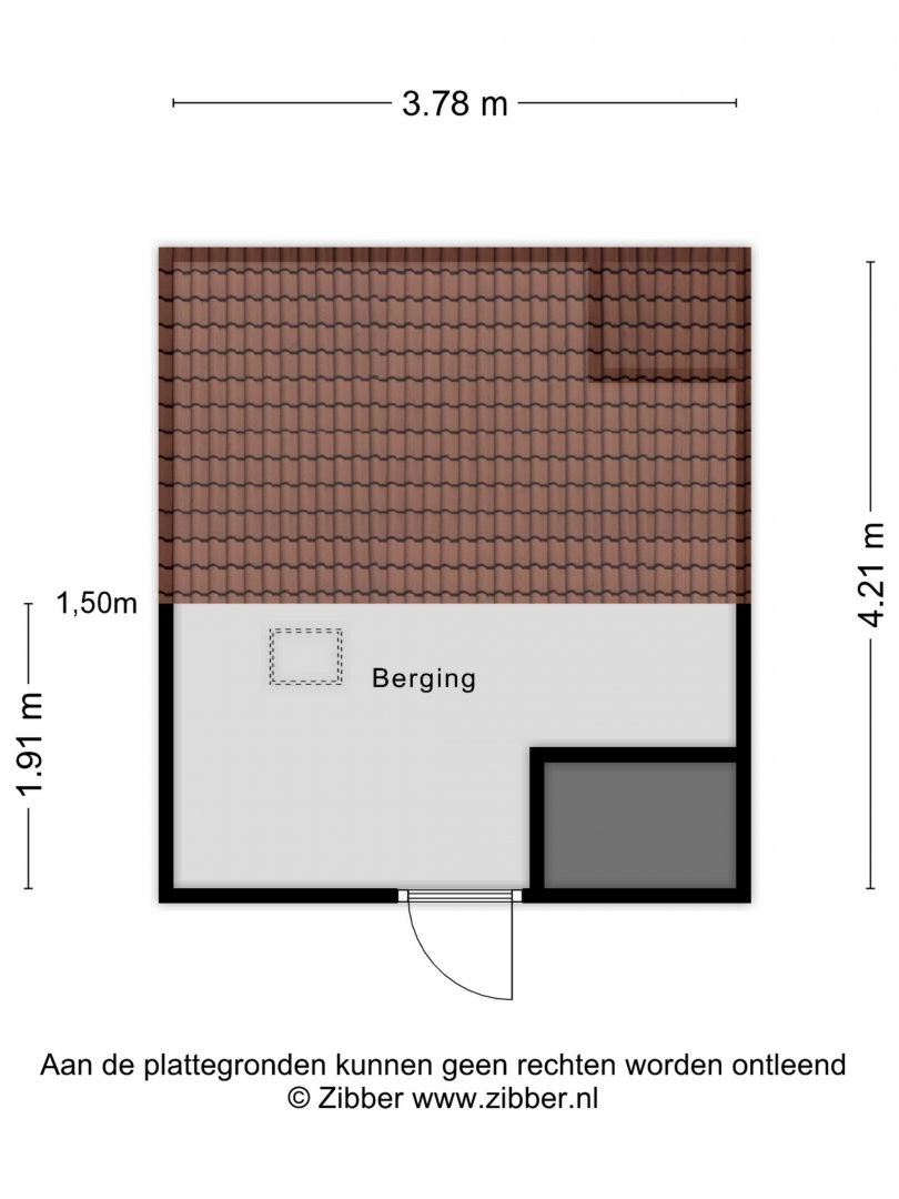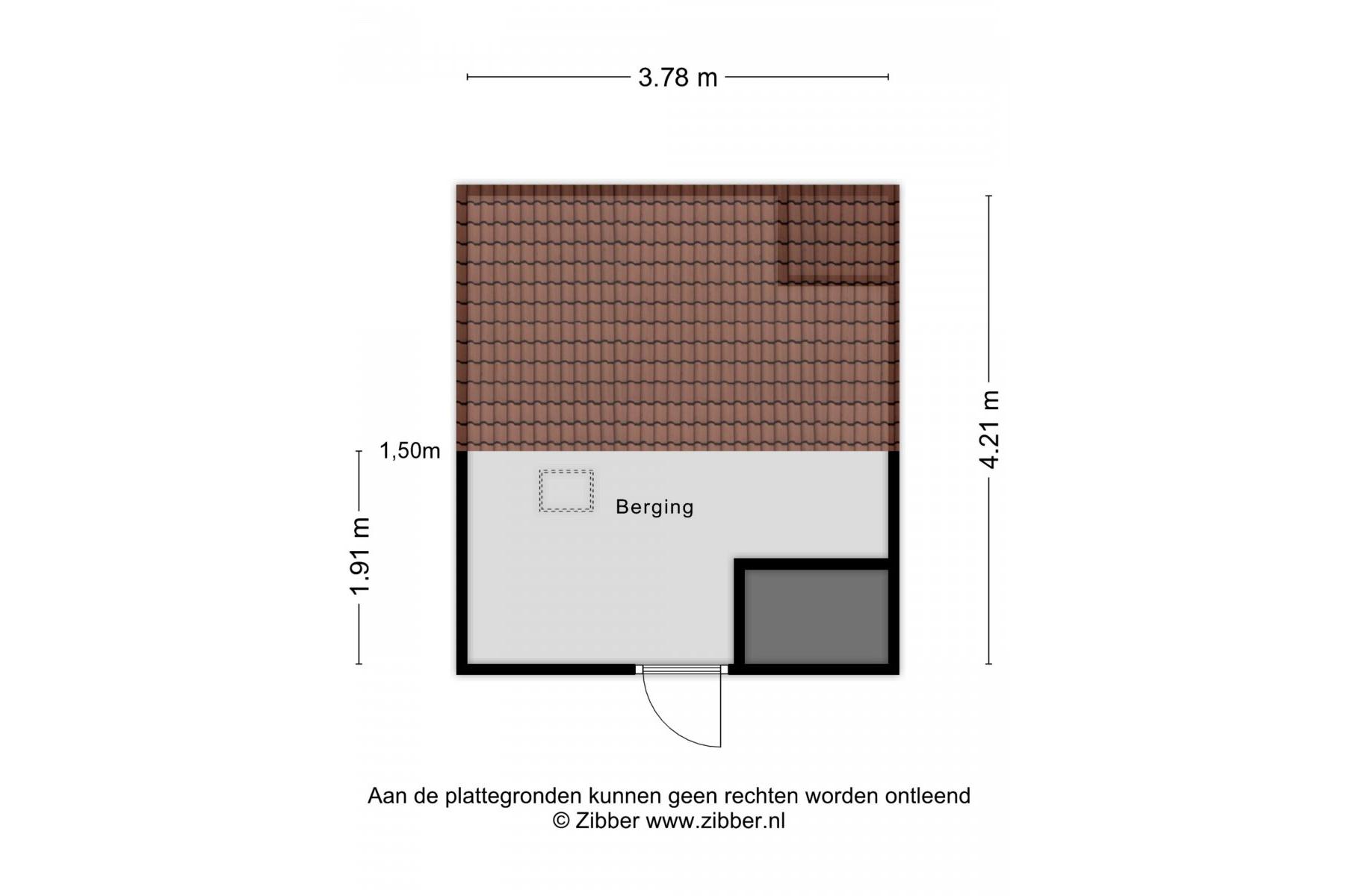 Vierde verdieping: zolderberging van ca. 6m².