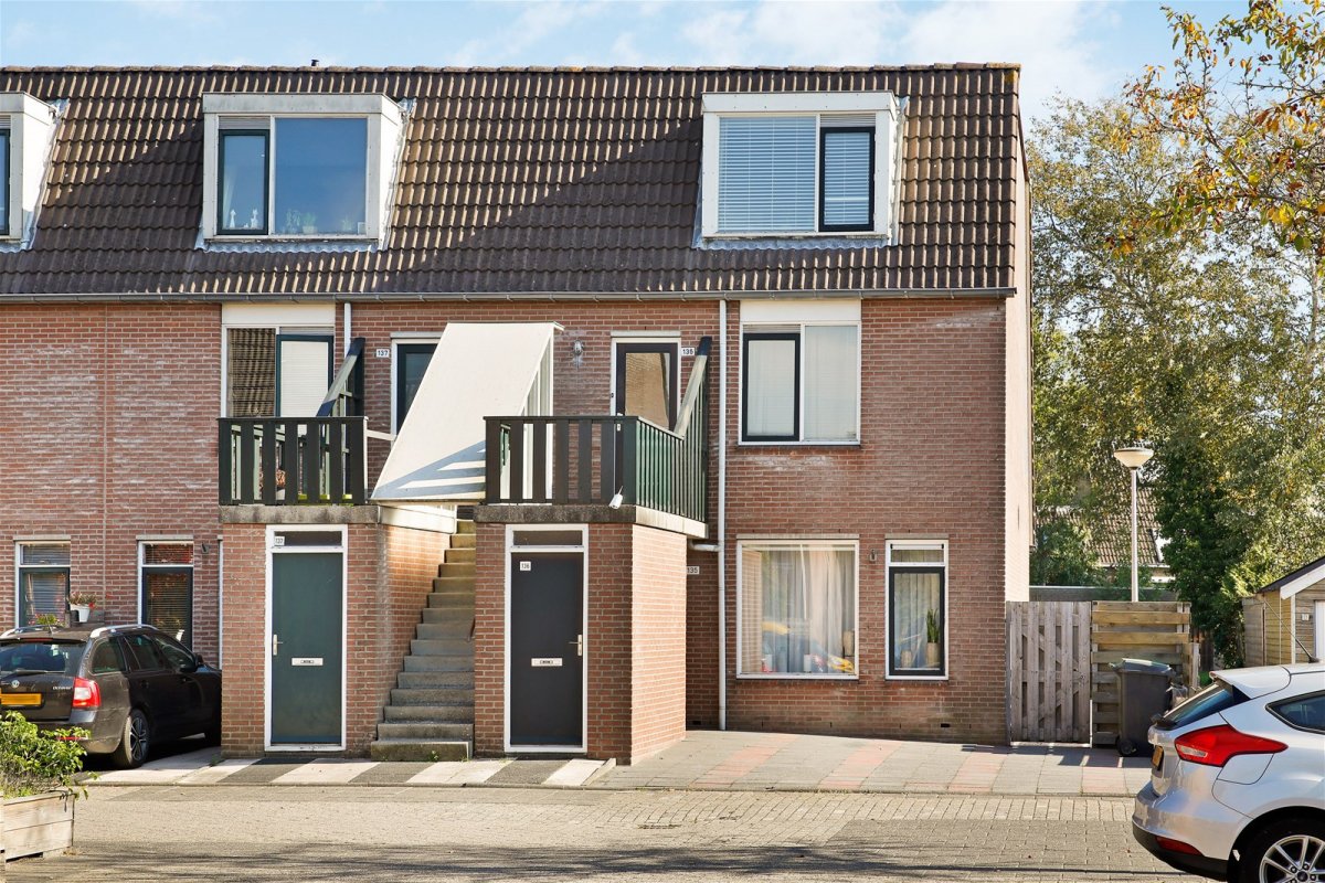 Eerste verdieping: balkon/dakterras 7m², entree van de woning, hal, meterkast en berging onder de trap.