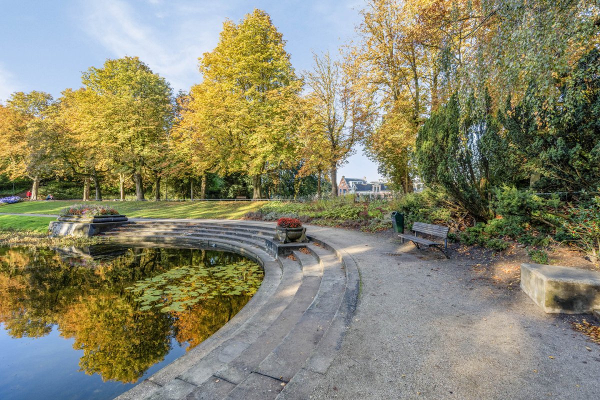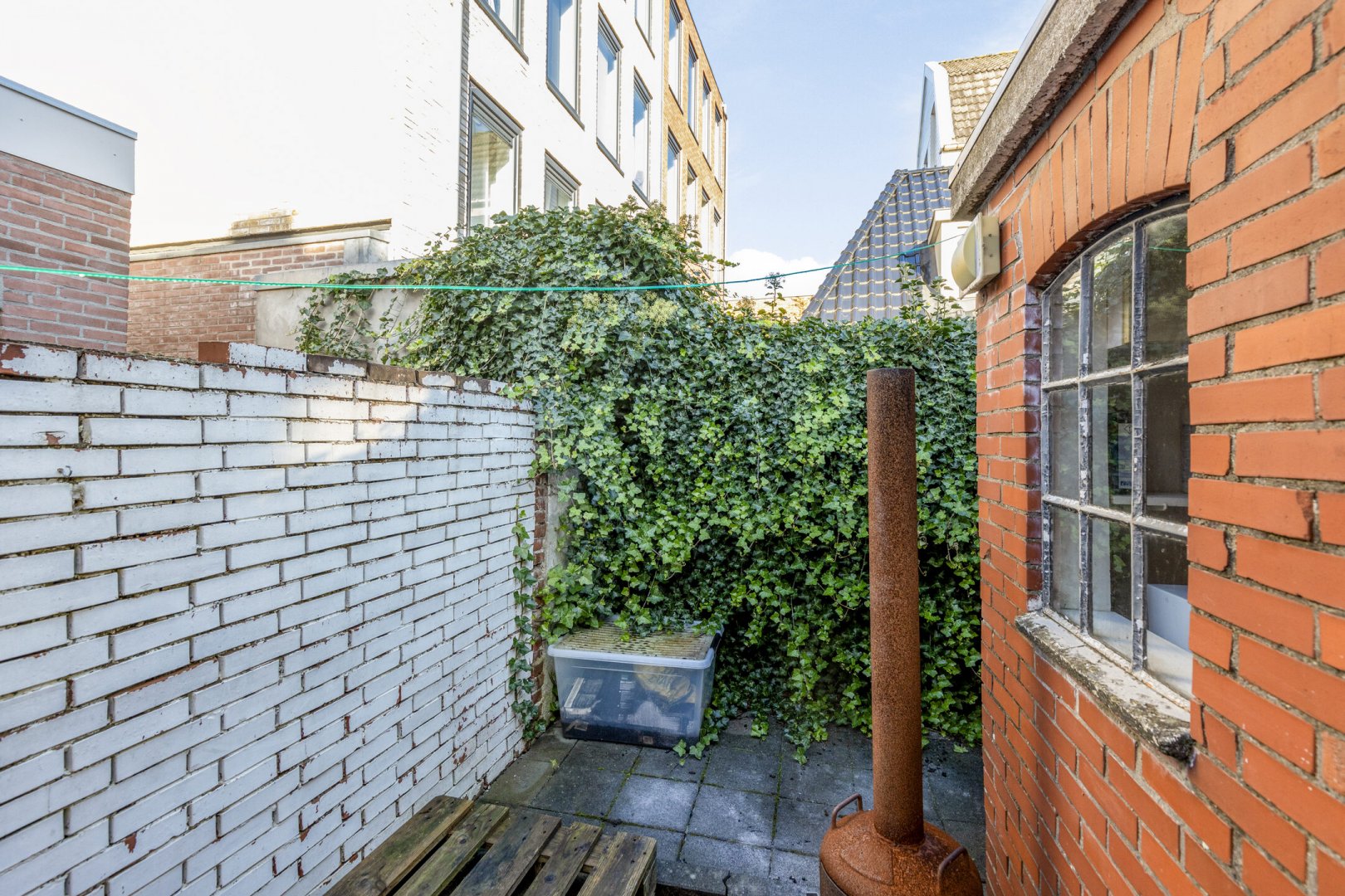 De stadse achtertuin is gelegen op het noordwesten en toegankelijk vanuit de bijkeuken.