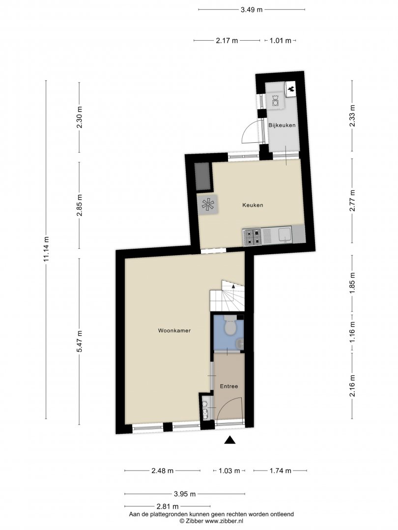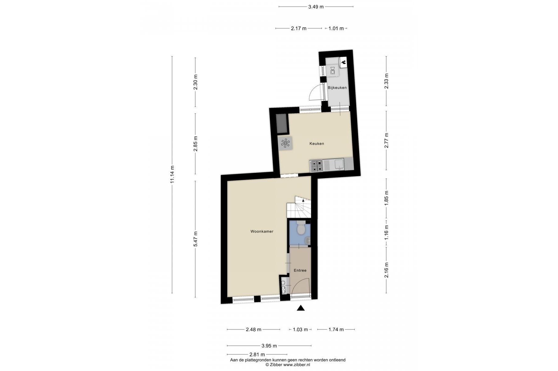 Begane grond: entree, hal, meterkast, toilet met fonteintje, woonkamer van 17,5m², half open keuken, bijkeuken alwaar wasmachineaansluiting en cv-opstelplaats.