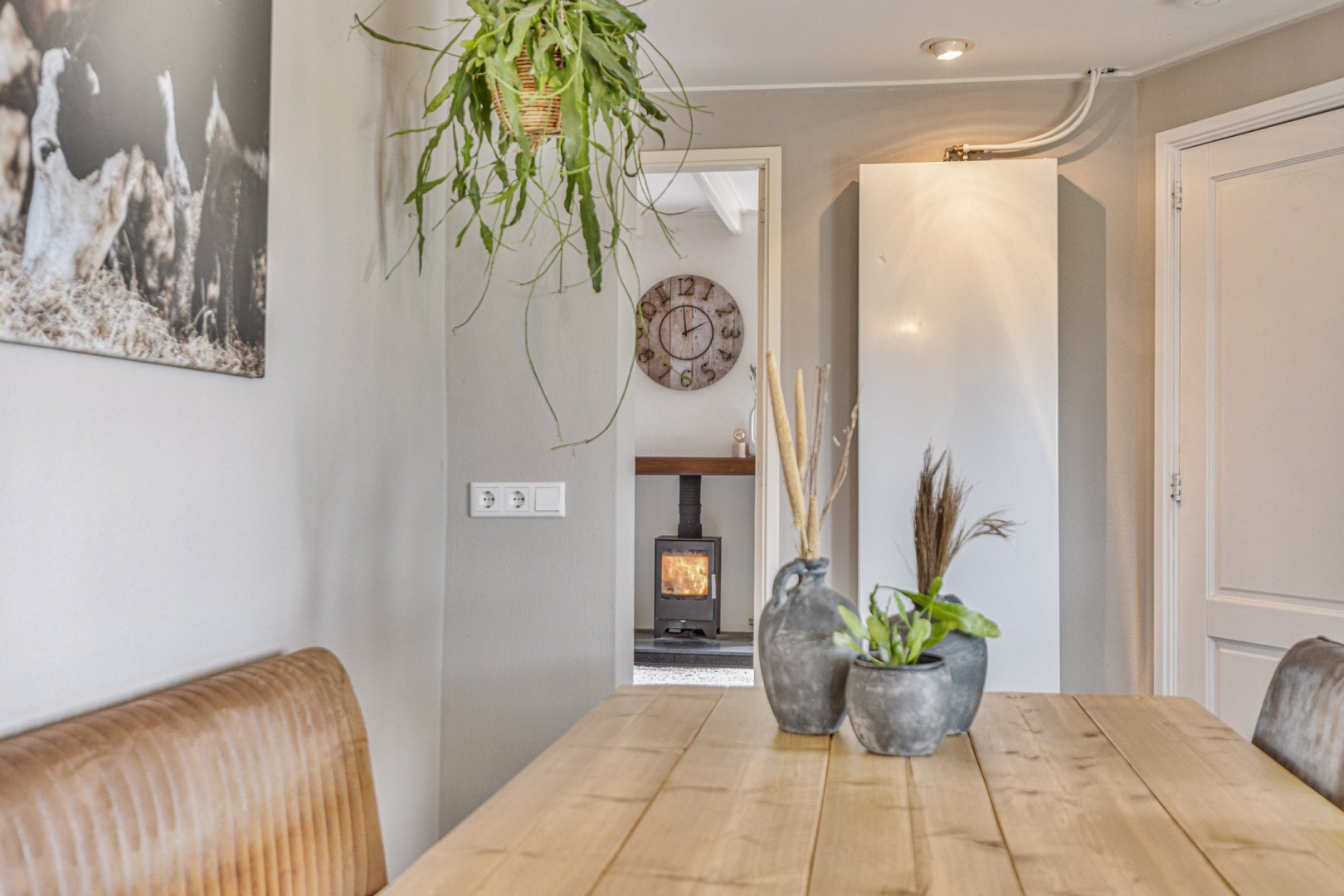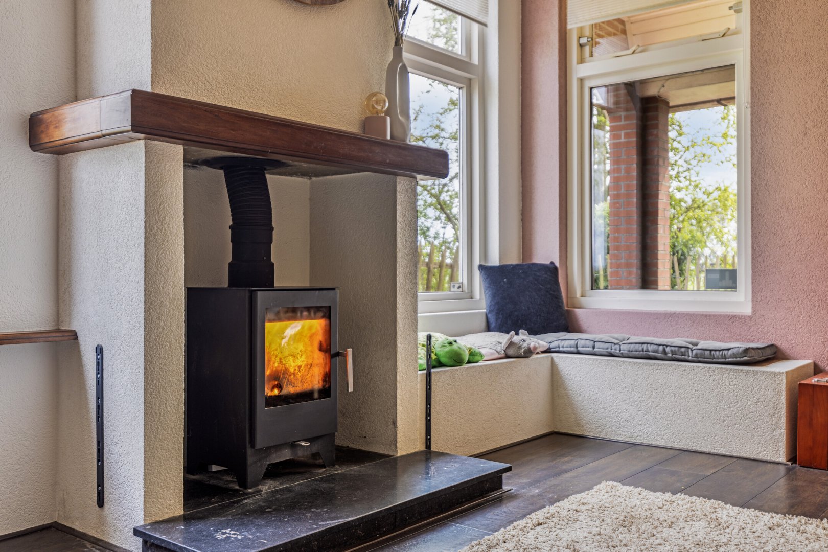 - De woonkamer is voorzien van vloerverwarming en een houtkachel.
