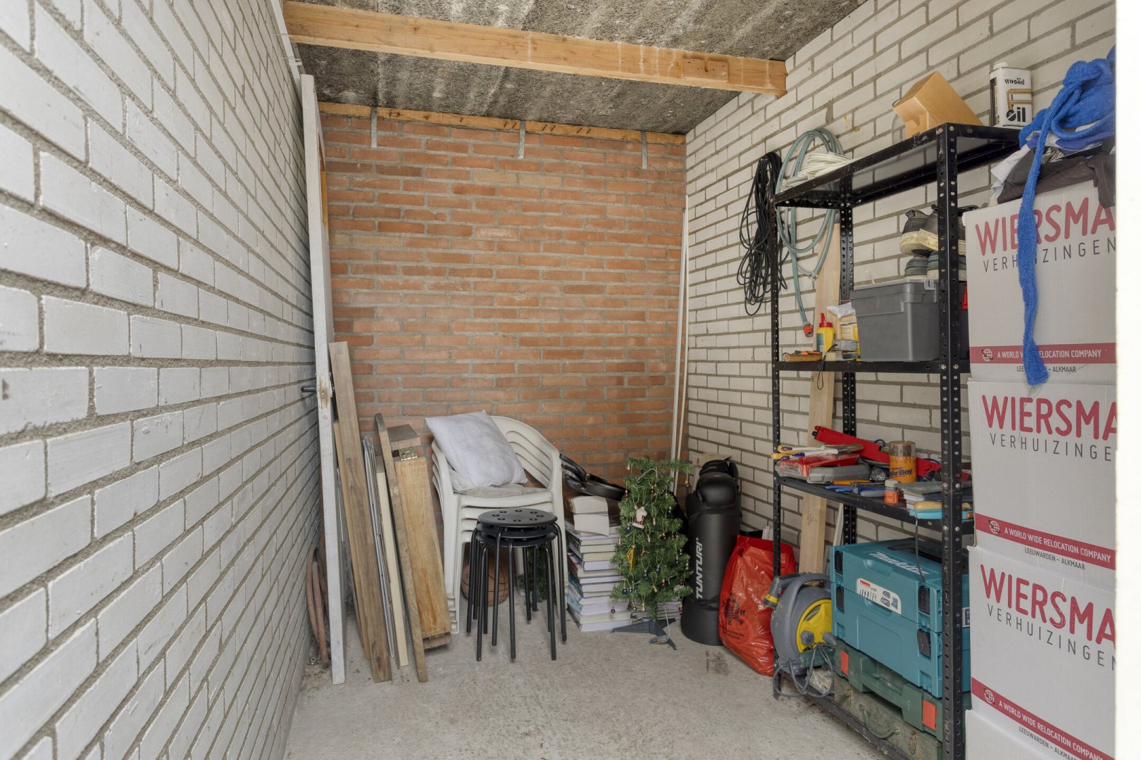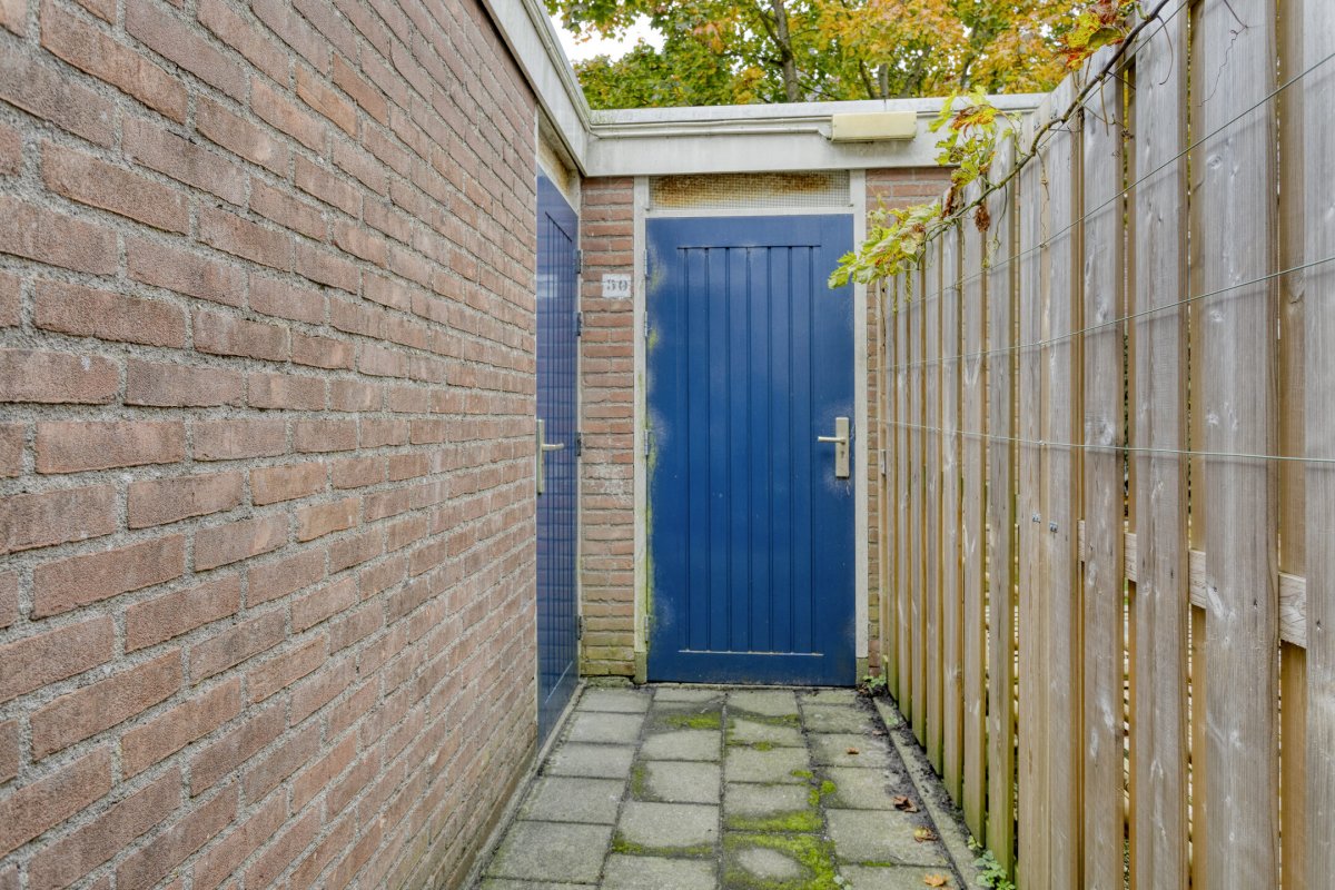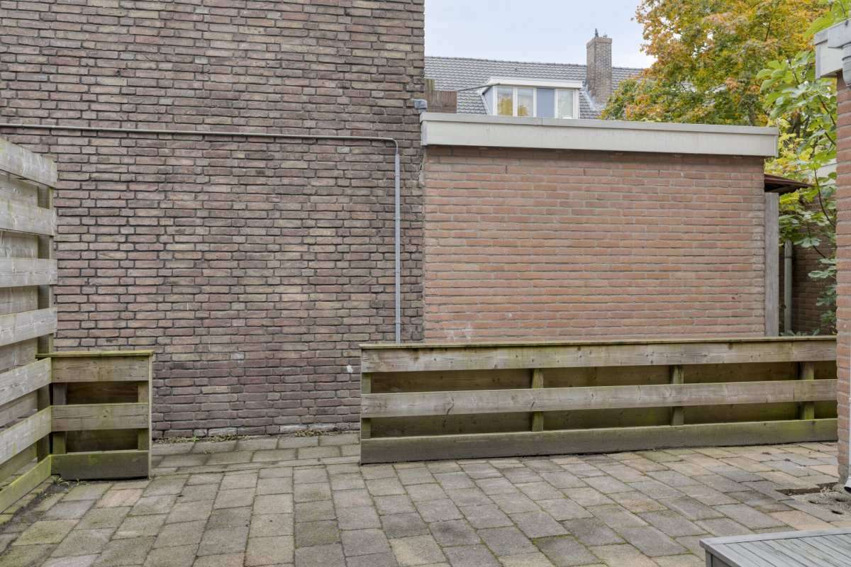 De achtertuin is toegankelijk vanuit de keuken. Het betreft een tuin op het westen. Verder is via een afgesloten achterom de berging van 6m² toegankelijk.