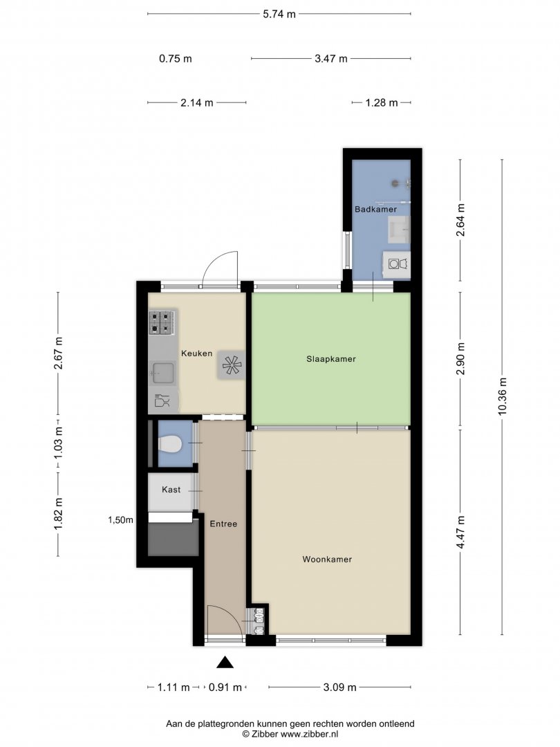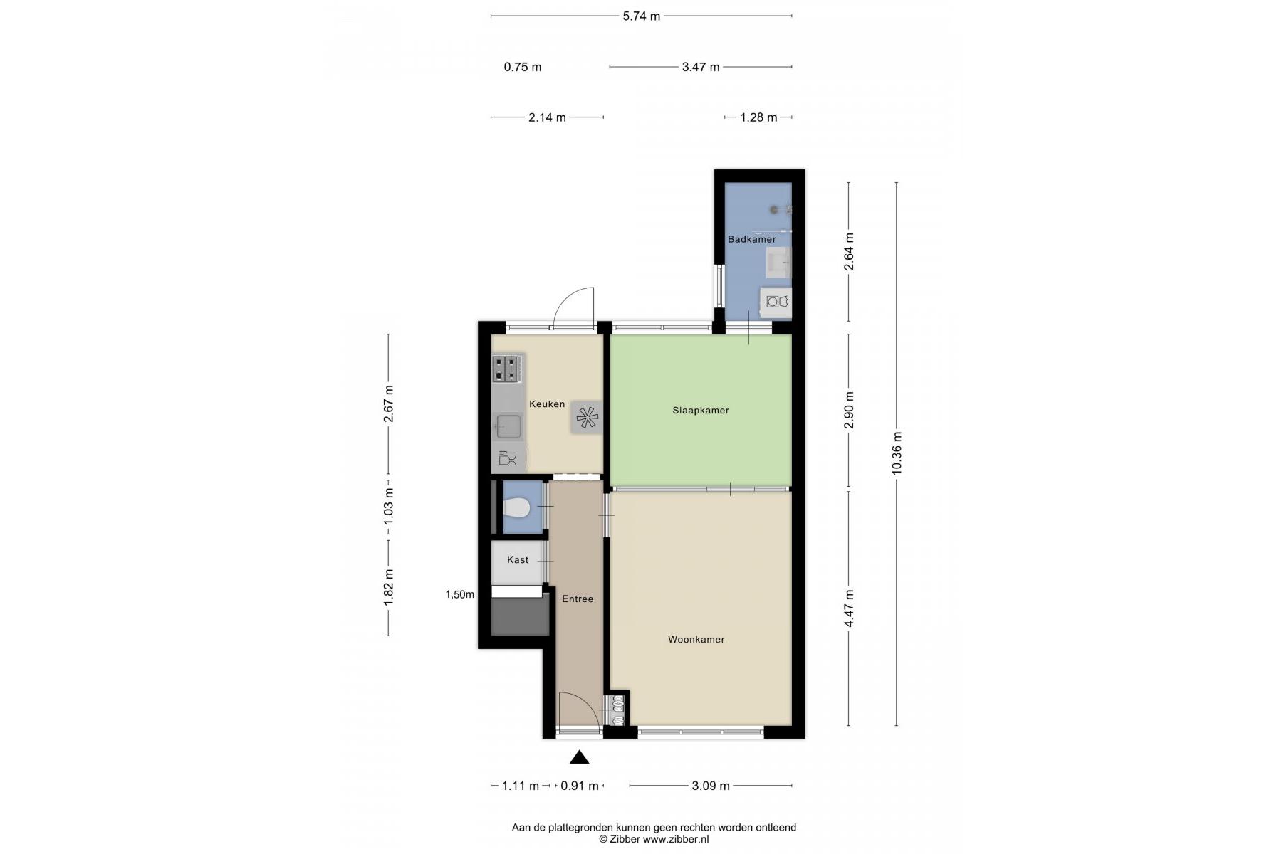Begane grond: entree, hal, meterkast, trapkast, modern toilet, nette keuken van 6m², woonkamer van 16m², slaapkamer van 10m², moderne badkamer voorzien van douche, vaste wastafel en wasmachineaansluiting.