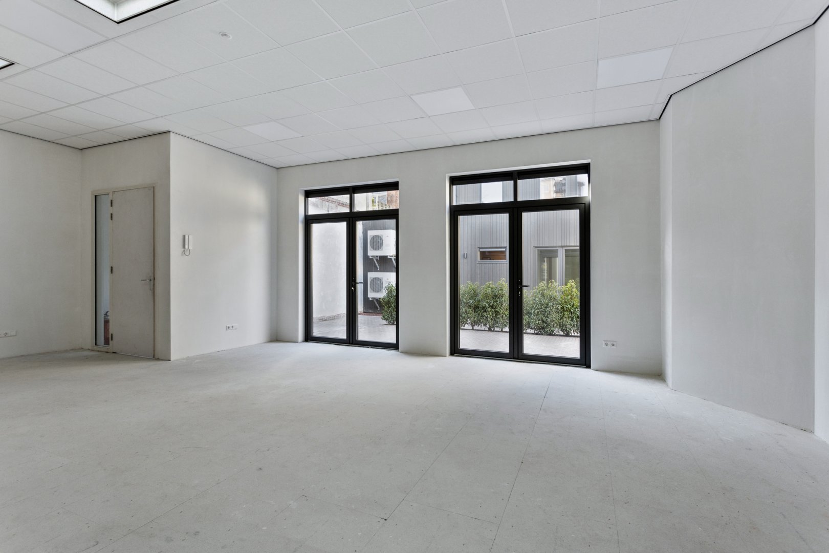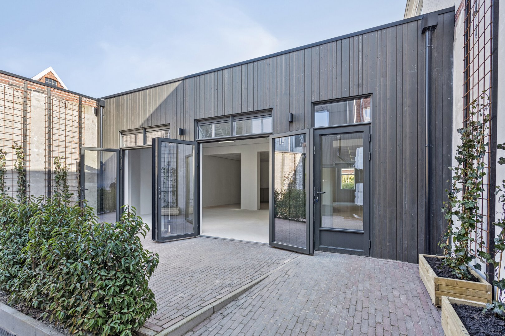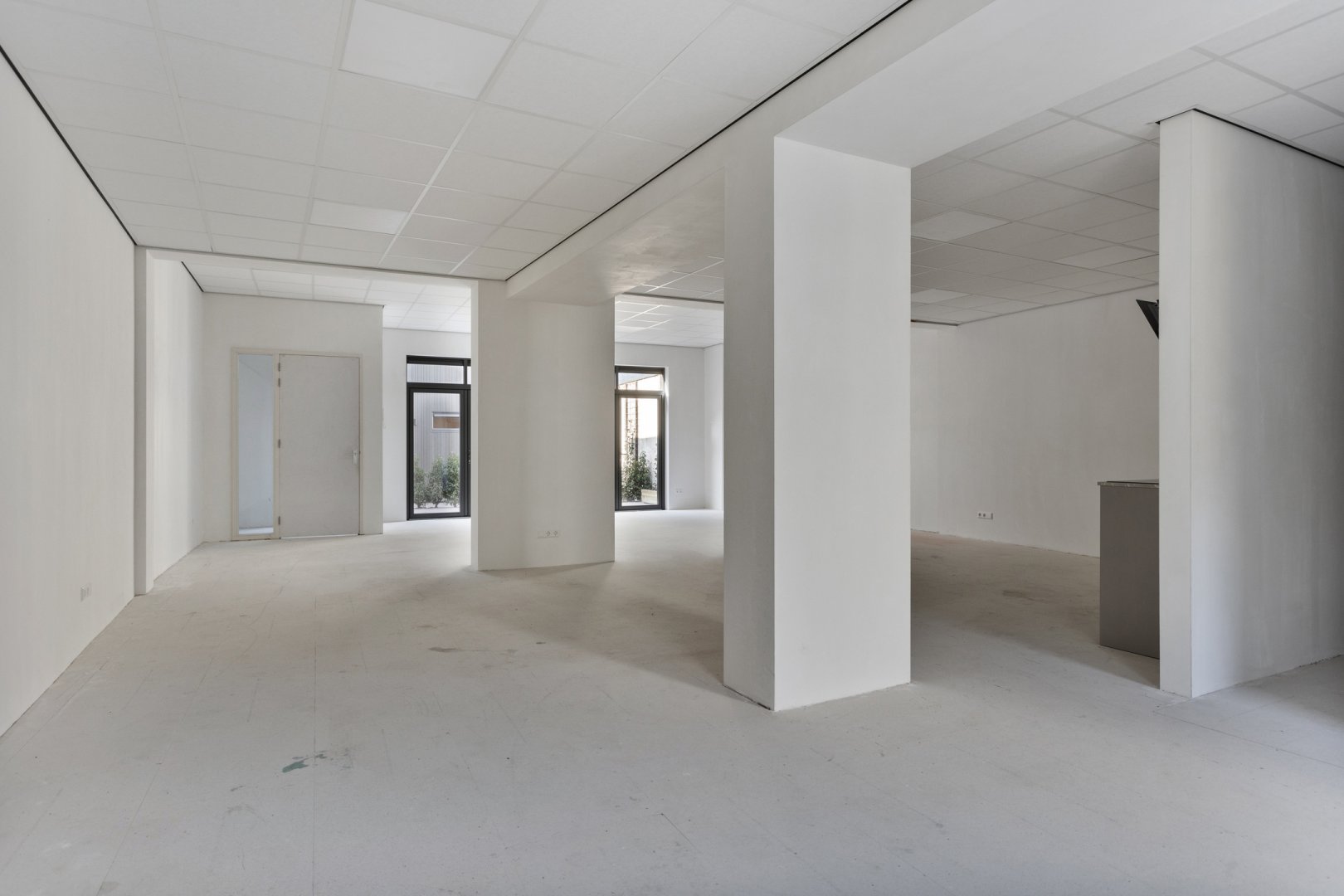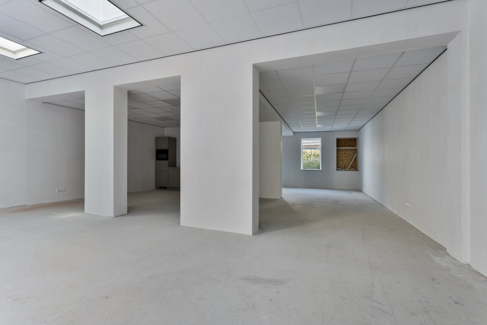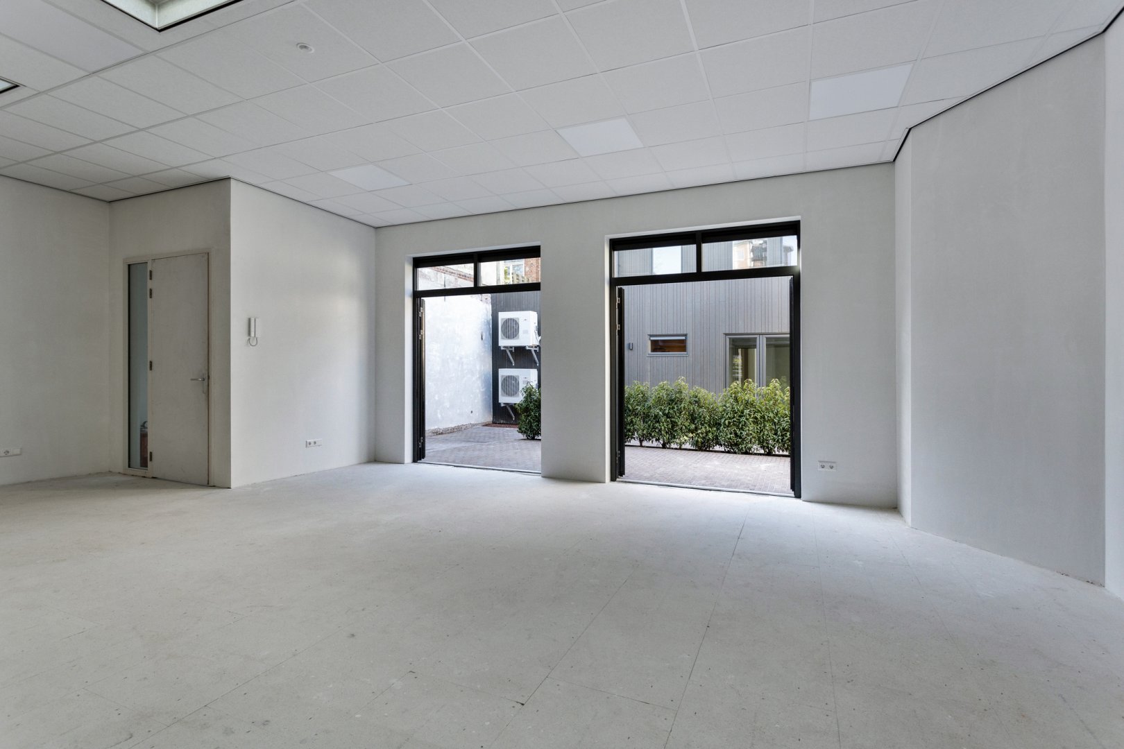 De bedrijfsruimte heeft een oppervlakte van 113m². Binnen deze ruimte is er een keuken, 2 toiletten met fonteintjes en een technische ruimte. Verder is er een grote open ruimte welke naar eigen gebruik is in te vullen. Er komt veel licht door de grote raampartijen en dakramen binnen, wat prettig is en waardoor de ruimte ook als atelier goed te gebruiken is. Aan de voorzijde van de bedrijfsruimte is een eigen buitenruimte aanwezig van ca. 15m².