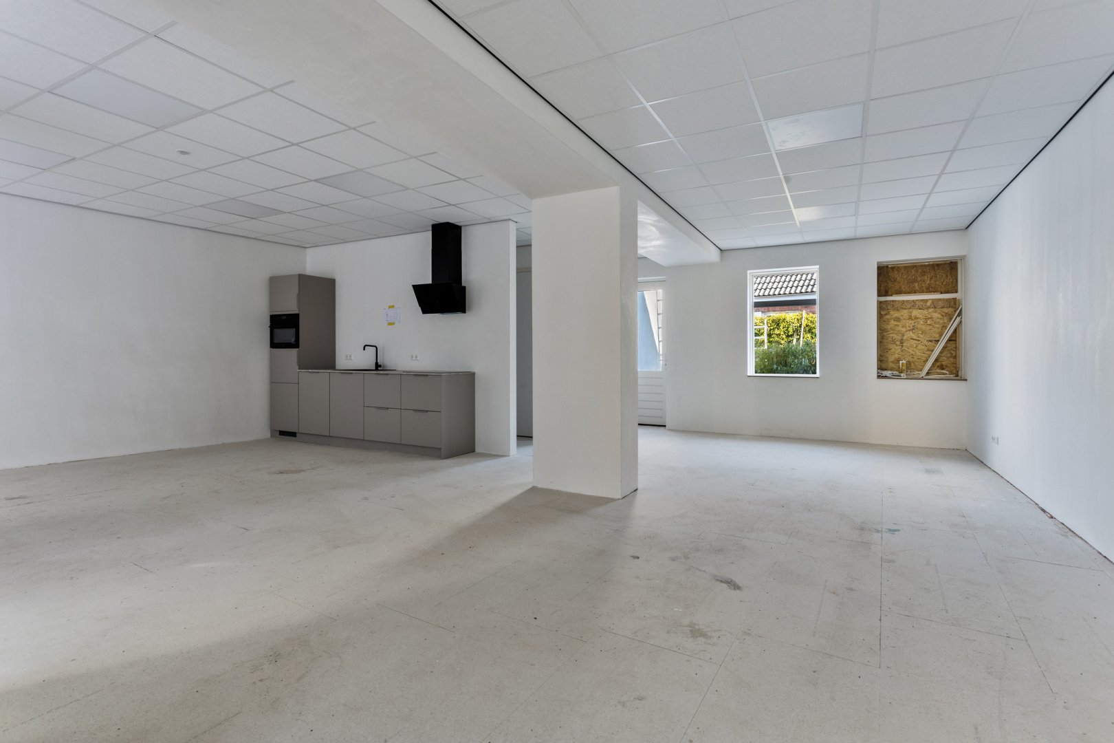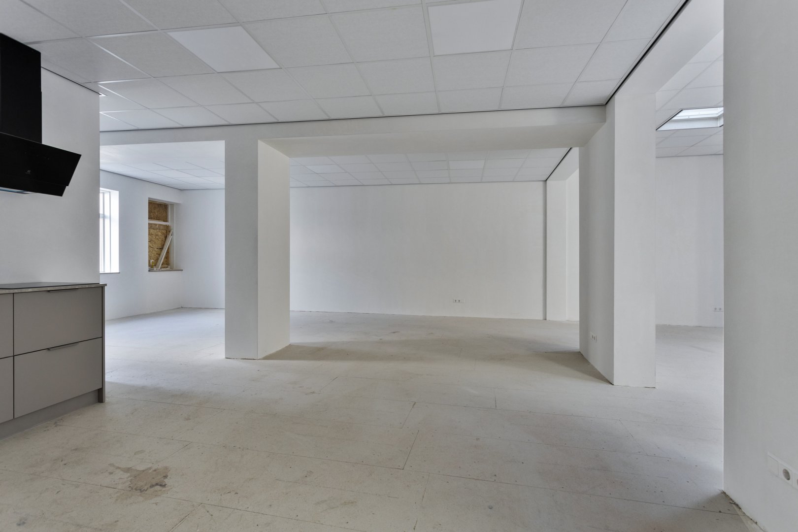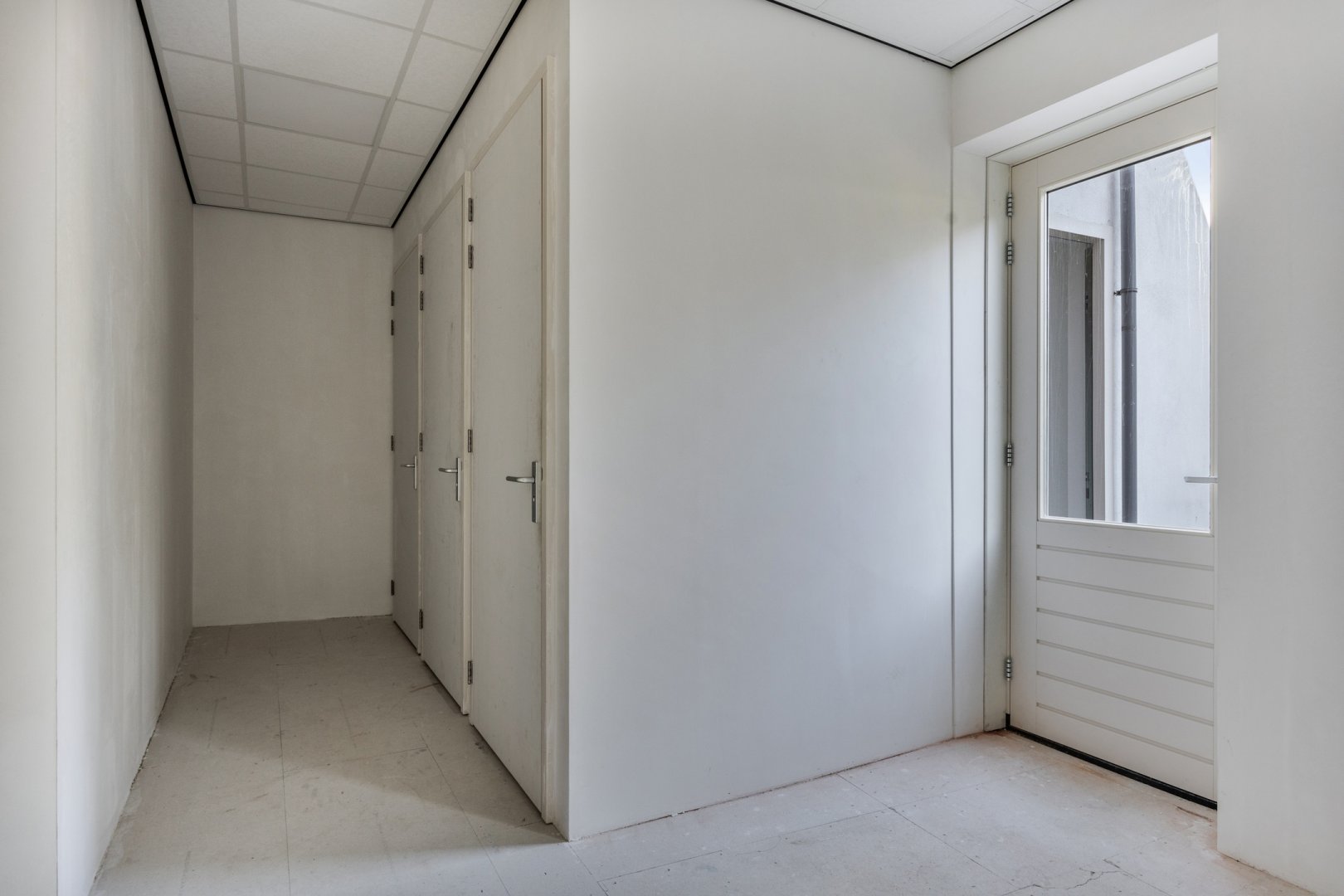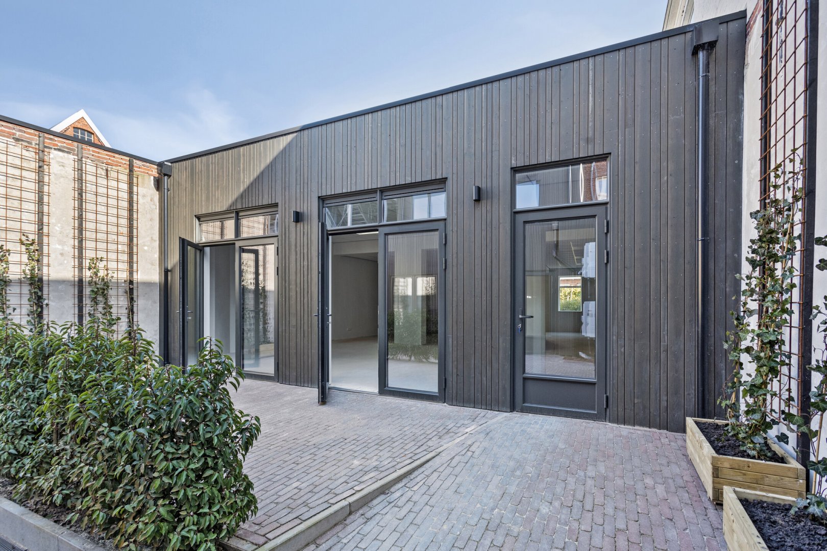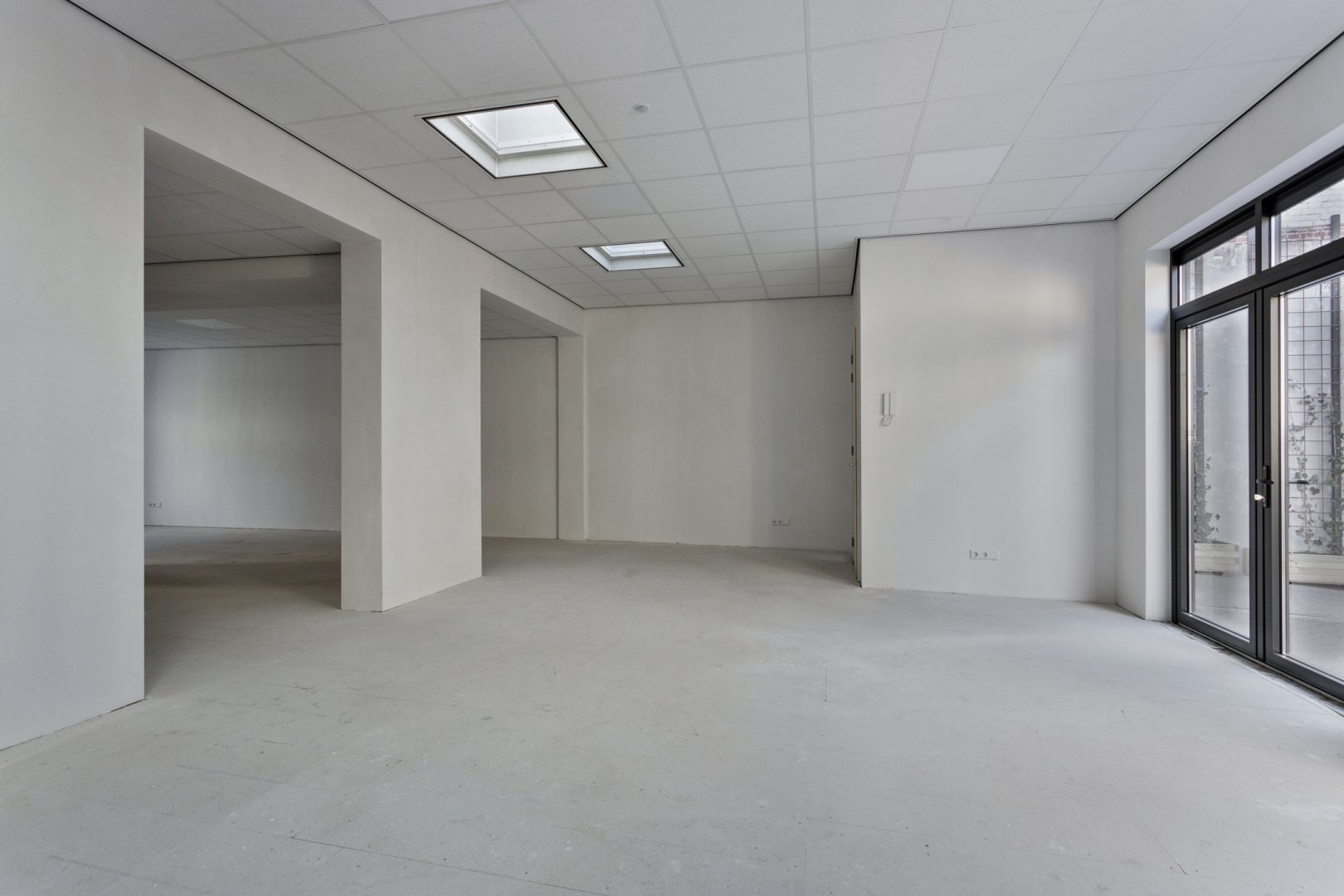 De bedrijfsruimte heeft een oppervlakte van 113m². Binnen deze ruimte is er een keuken, 2 toiletten met fonteintjes en een technische ruimte. Verder is er een grote open ruimte welke naar eigen gebruik is in te vullen. Er komt veel licht door de grote raampartijen en dakramen binnen, wat prettig is en waardoor de ruimte ook als atelier goed te gebruiken is. Aan de voorzijde van de bedrijfsruimte is een eigen buitenruimte aanwezig van ca. 15m².