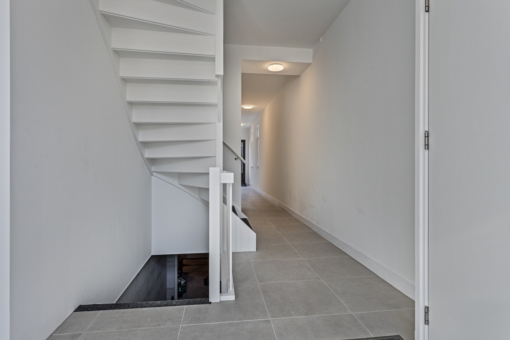Bij binnenkomst van het complex is er een centrale hal. Vanuit de hal is er een trap naar het souterrain, waar de berging zich bevindt. Het appartement heeft een eigen berging van 8m².