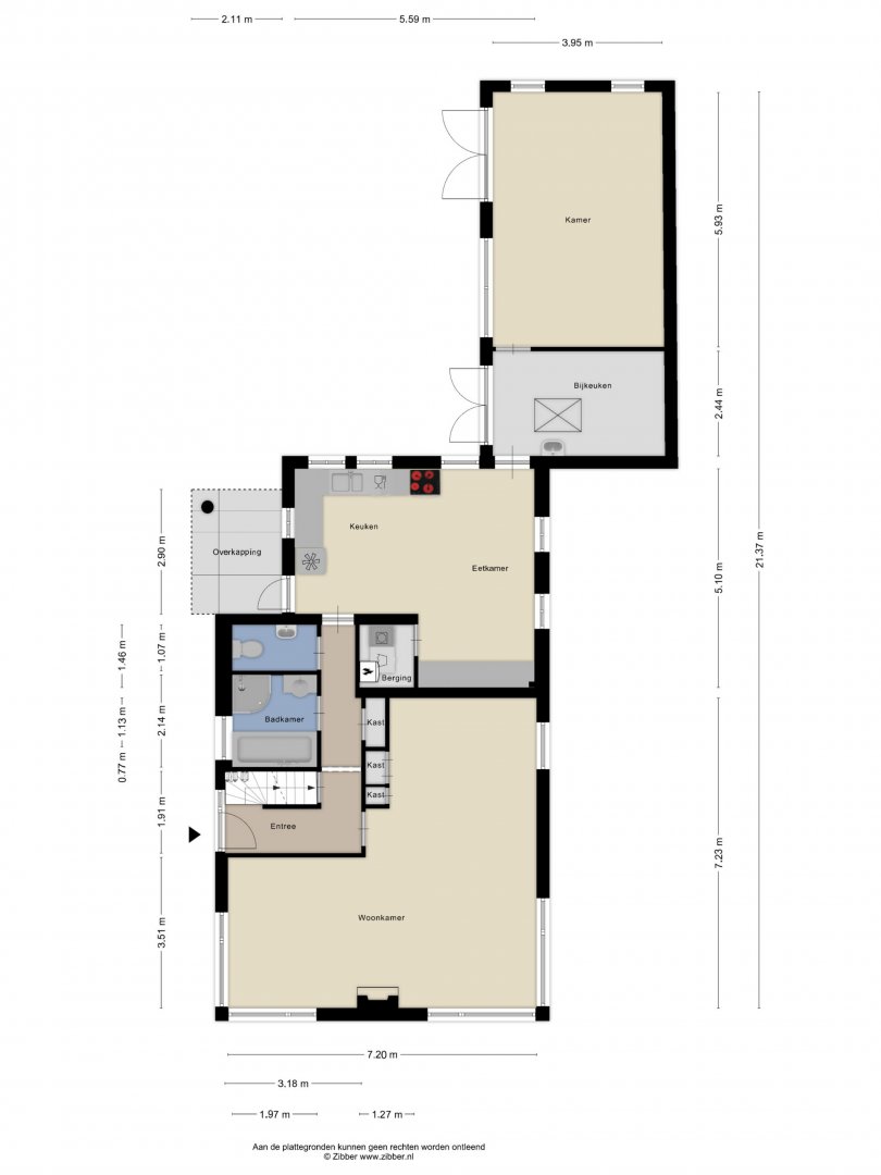 - Veel leefruimte op de begane grond, mede door de uitbouw.