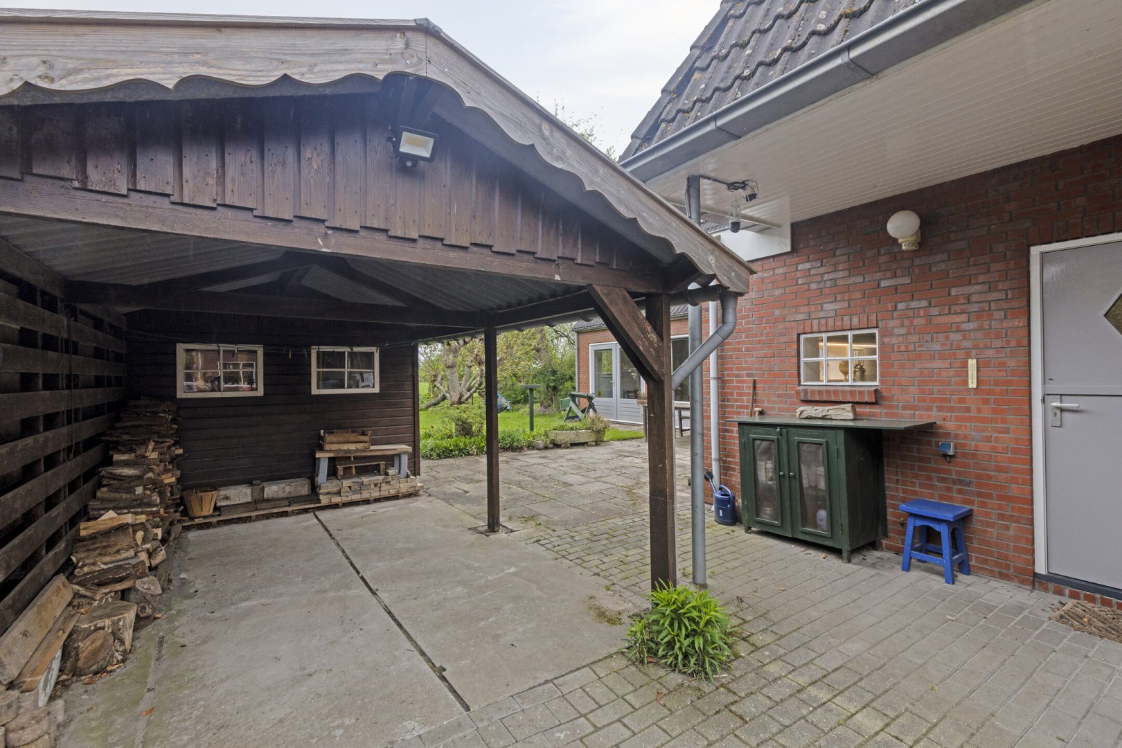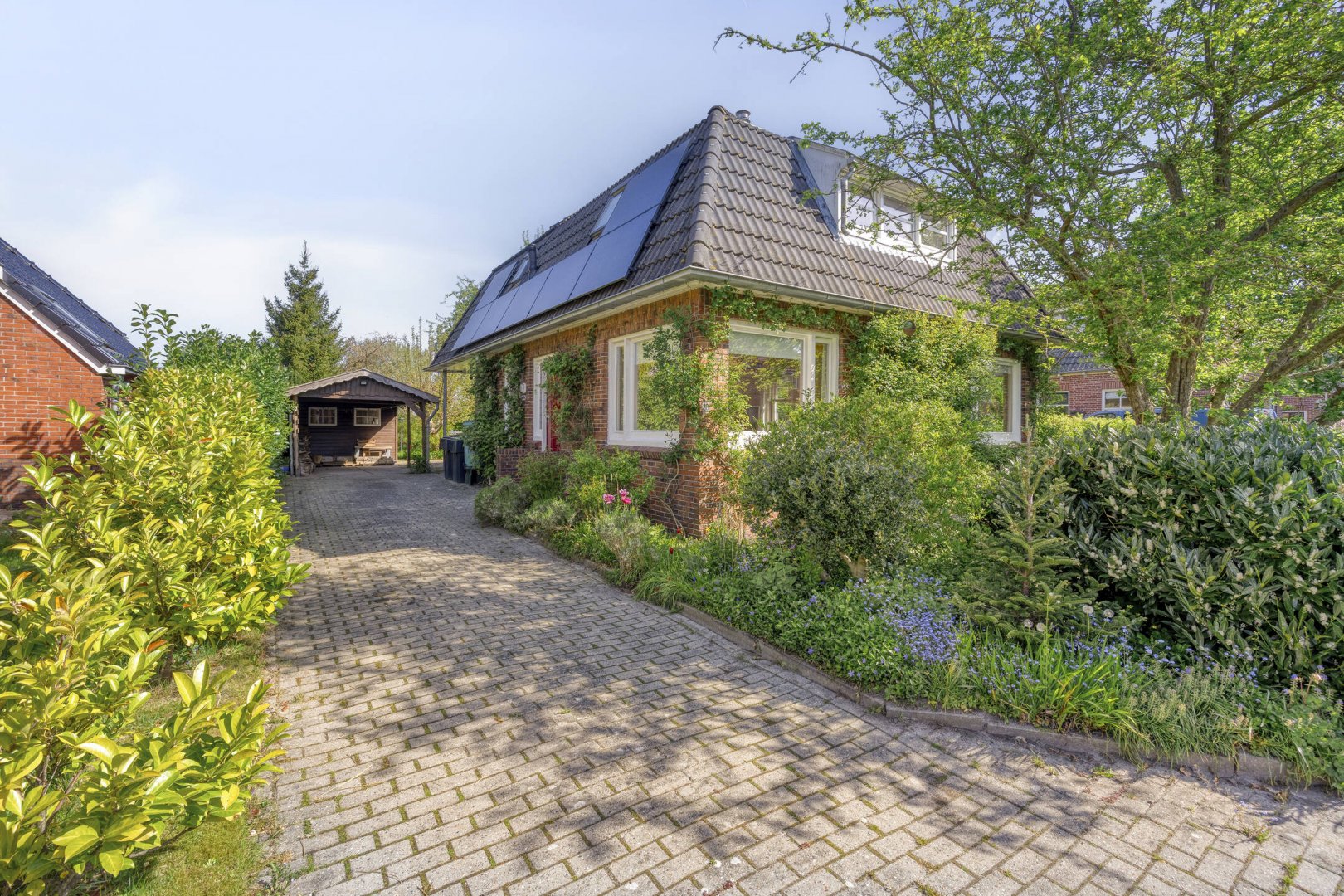 - De woning is voorzien van een carport met berging. Voor de carport is een lange oprit met ruimte voor meerdere auto's.