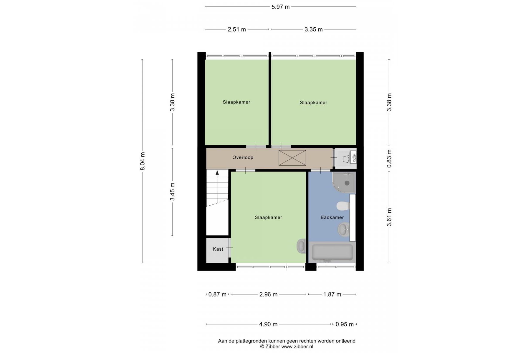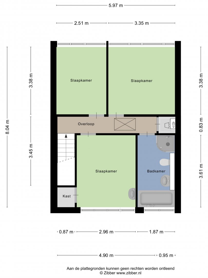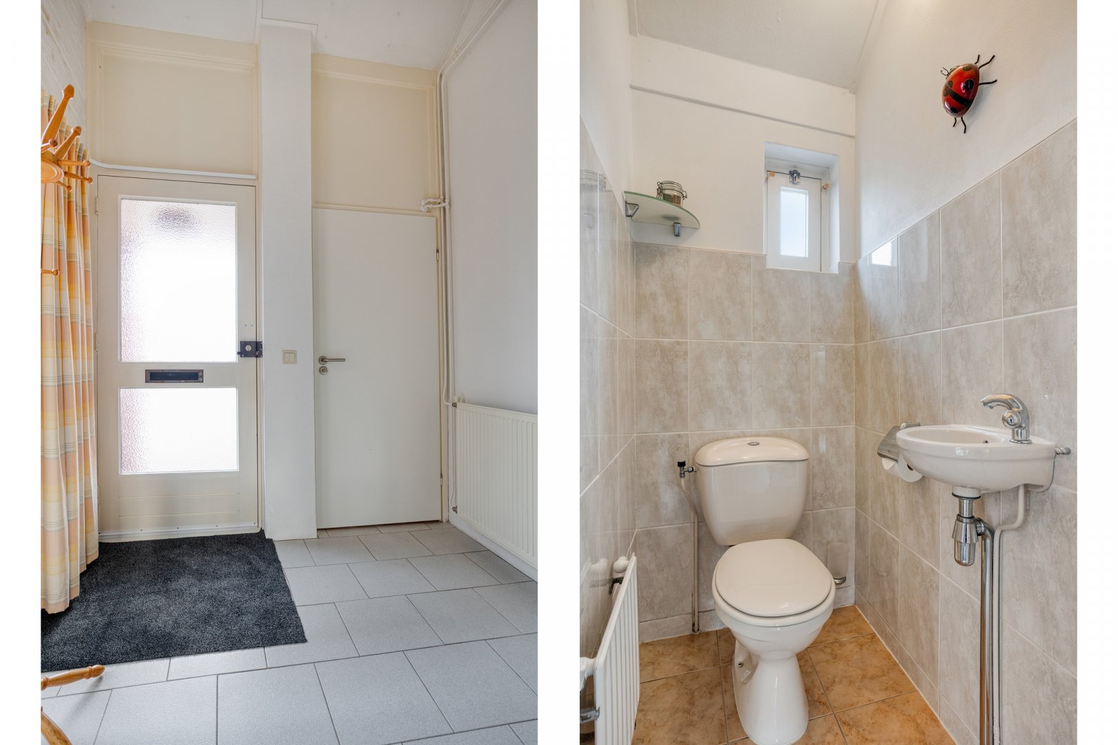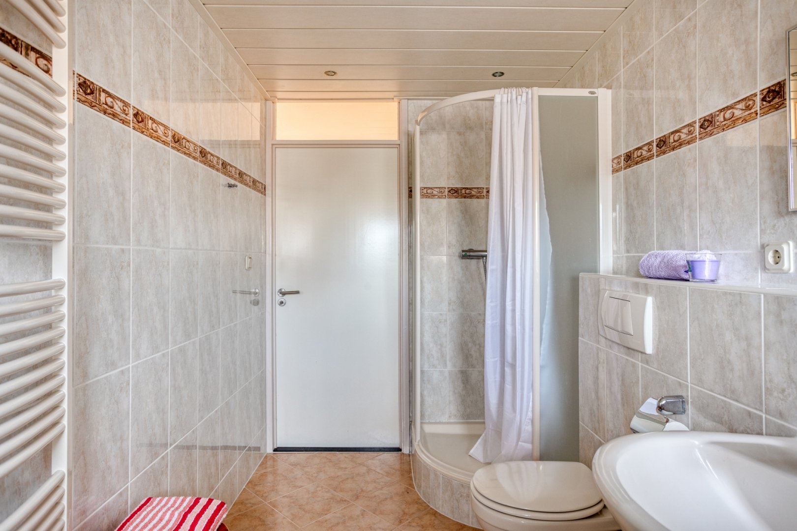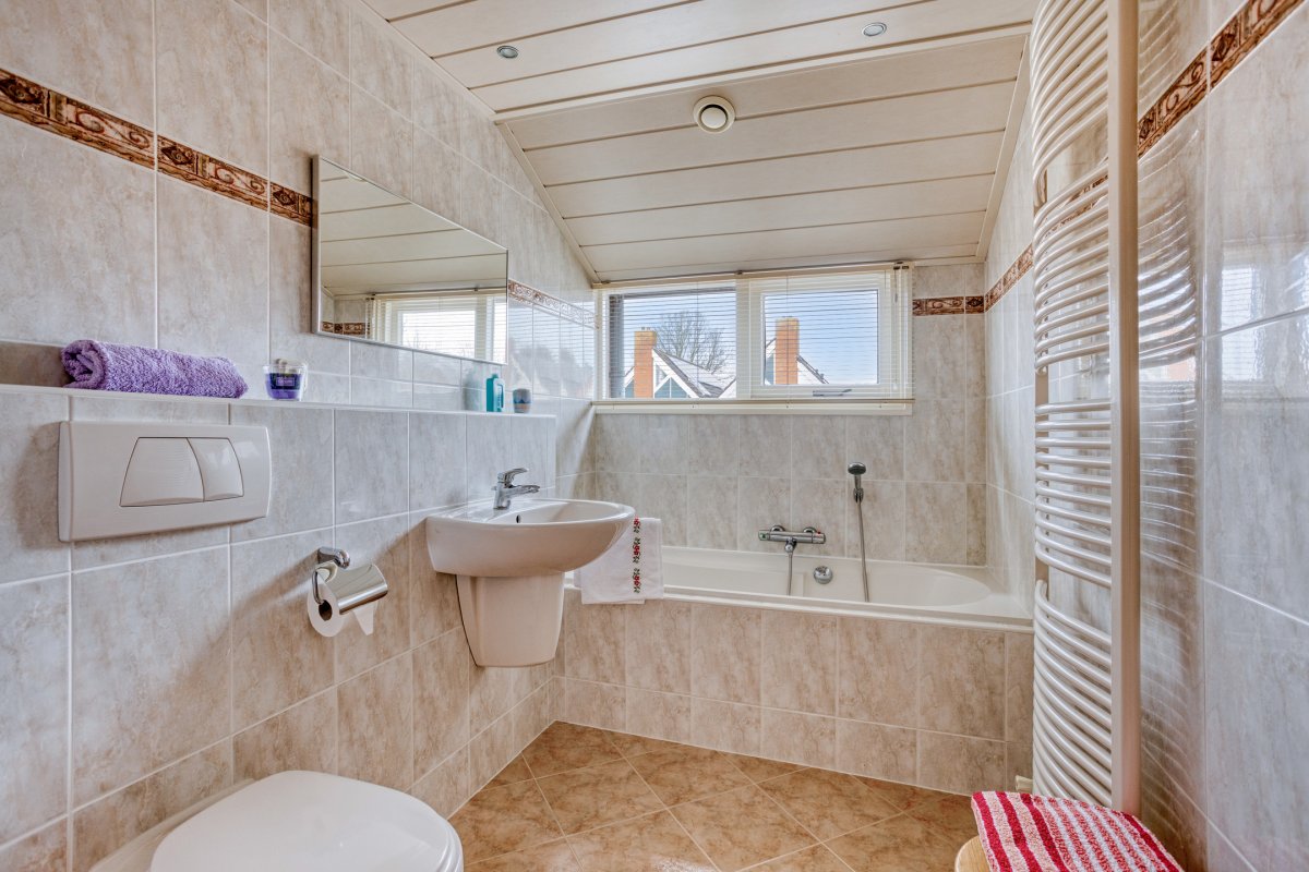 Eerste verdieping: overloop, 3 slaapkamers van respectievelijk 11m², 11m² met inbouwkast en 8m², badkamer met ligbad, douche, wastafel en tweede toilet, bergkast met cv-ketel en aansluiting voor de wasmachine.