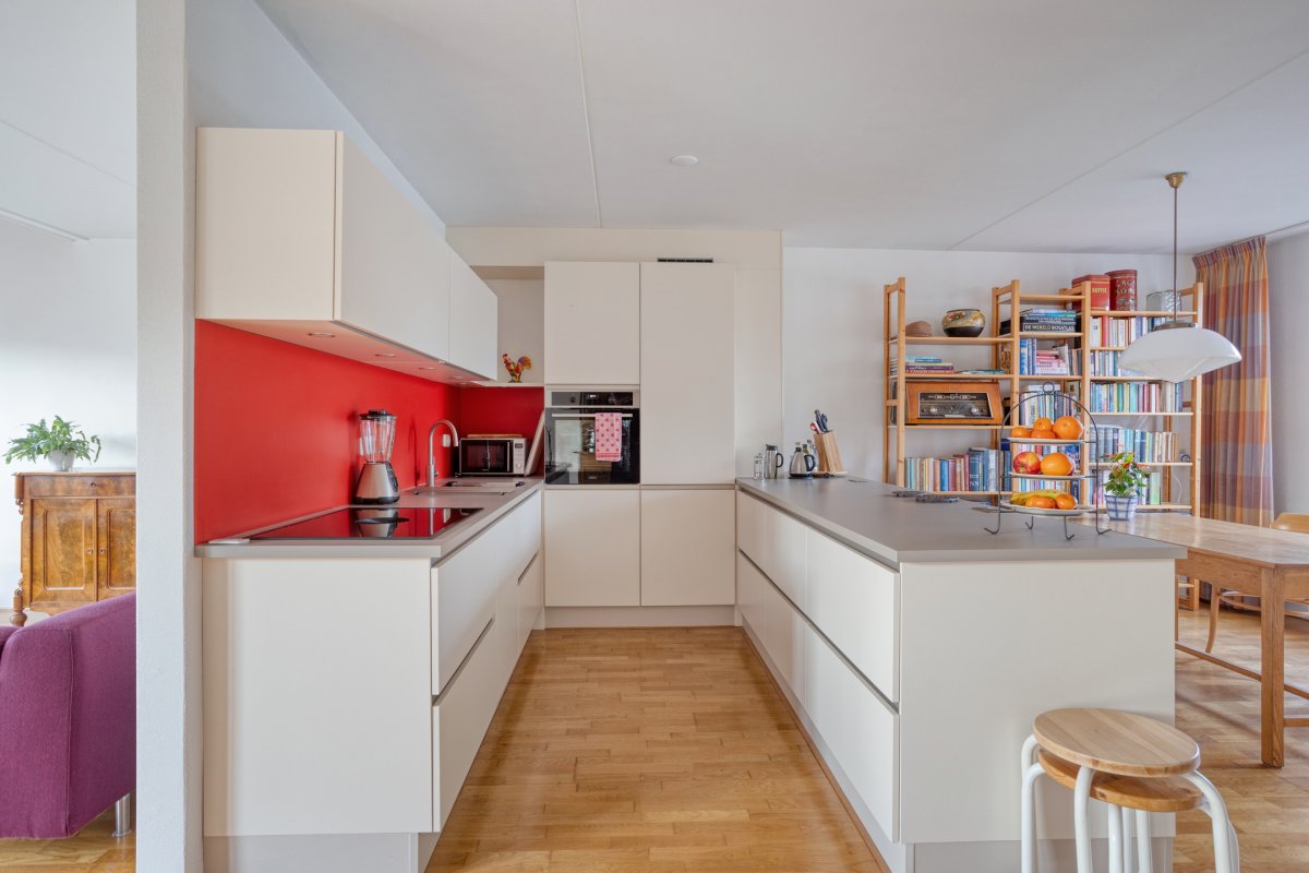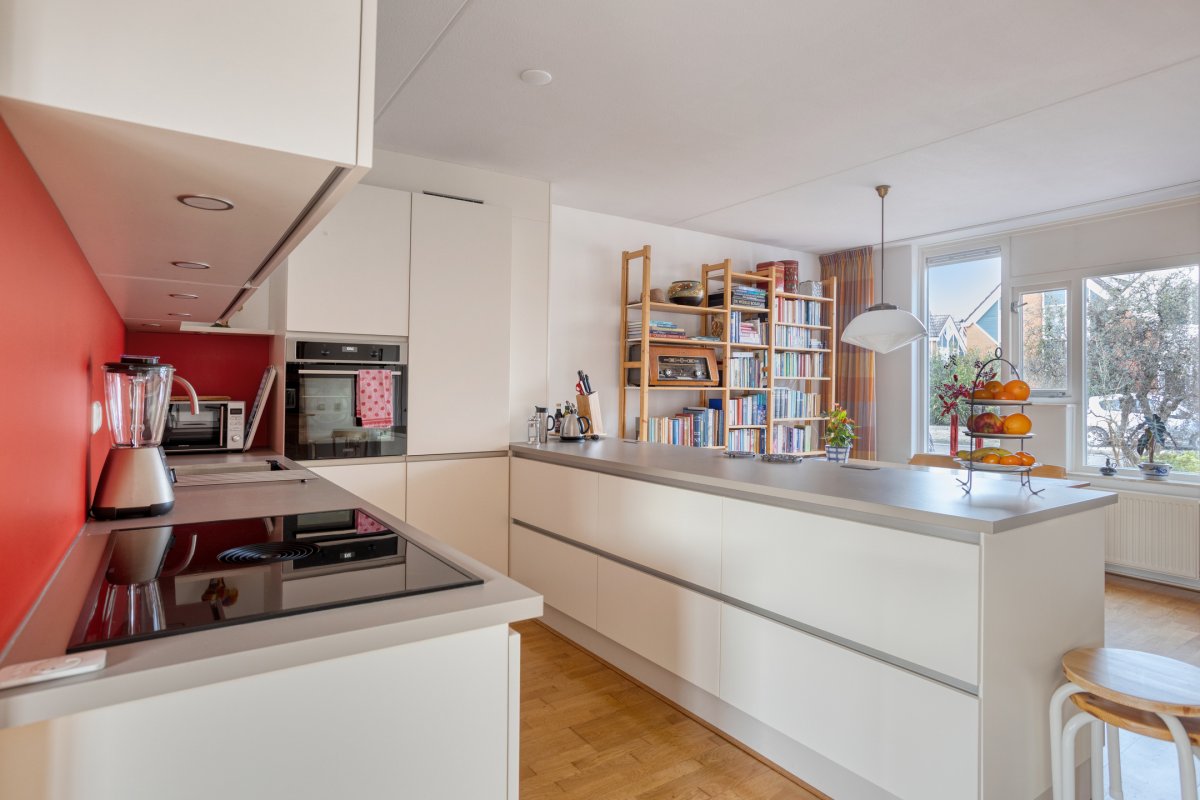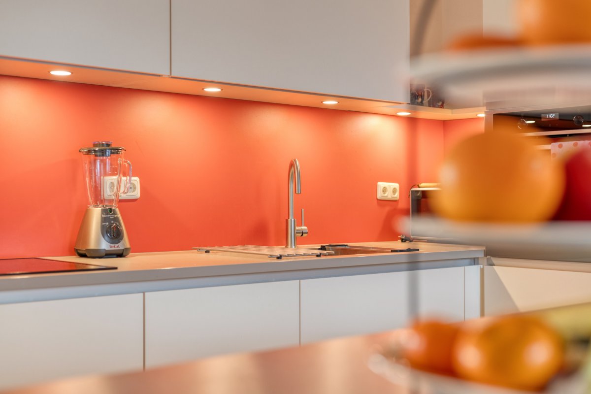 - De keuken is voorzien van de volgende inbouwapparatuur: vaatwasser, inductiekookplaat met geïntegreerde afzuiging, koelkast en vriezer. Naast de apparatuur is er voldoende kast- en werkbladruimte aanwezig.