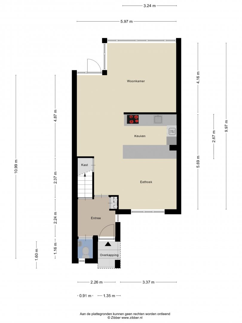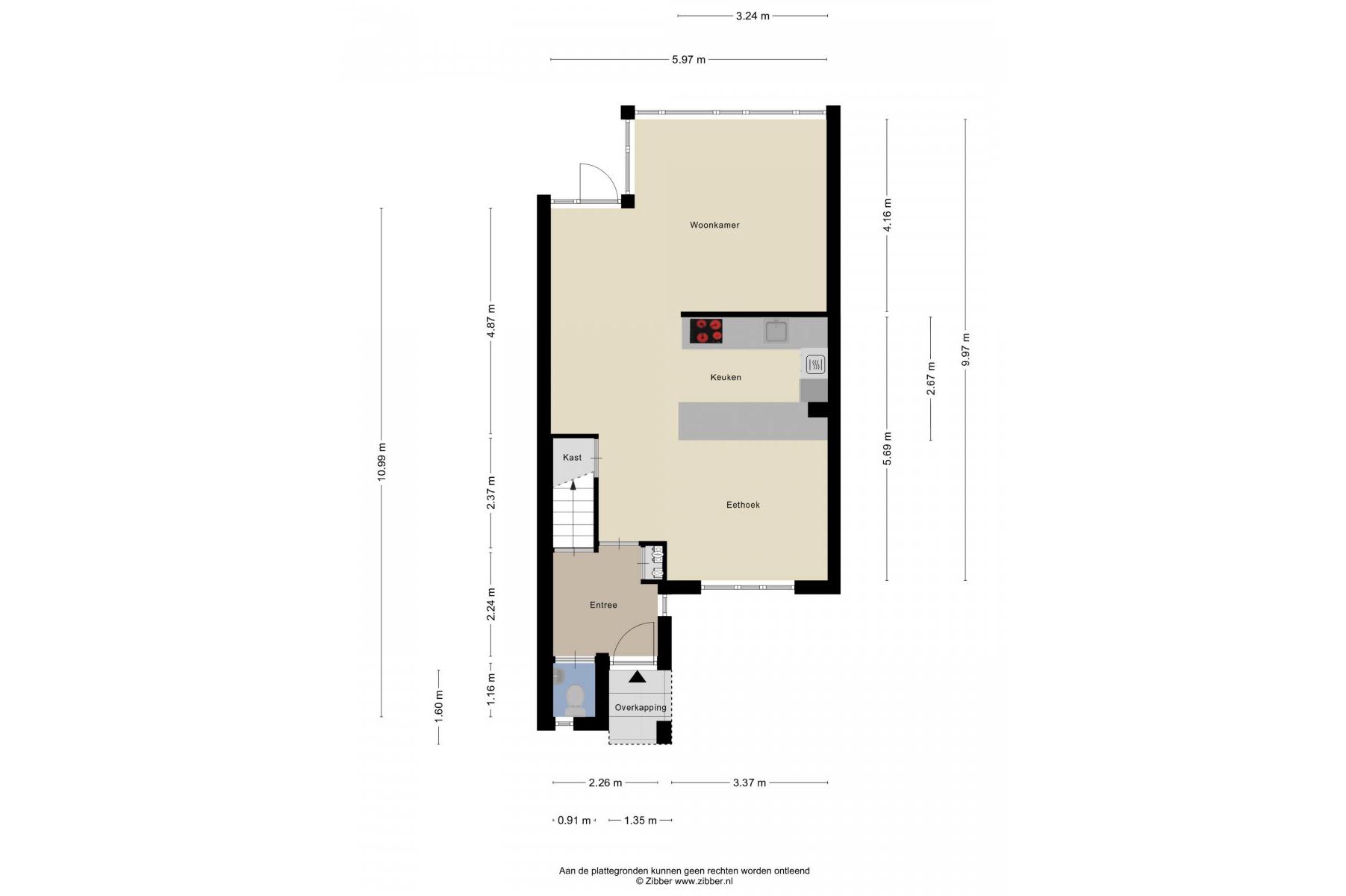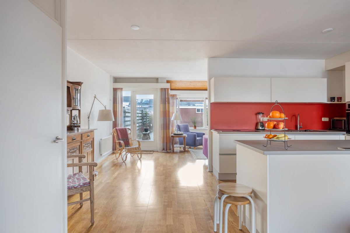 Begane grond: woningentree, hal, toilet, speels ingedeelde woonkamer met open keuken van samen 50m². De moderne keuken is vernieuwd in 2021 en voorzien van alle gemakken.