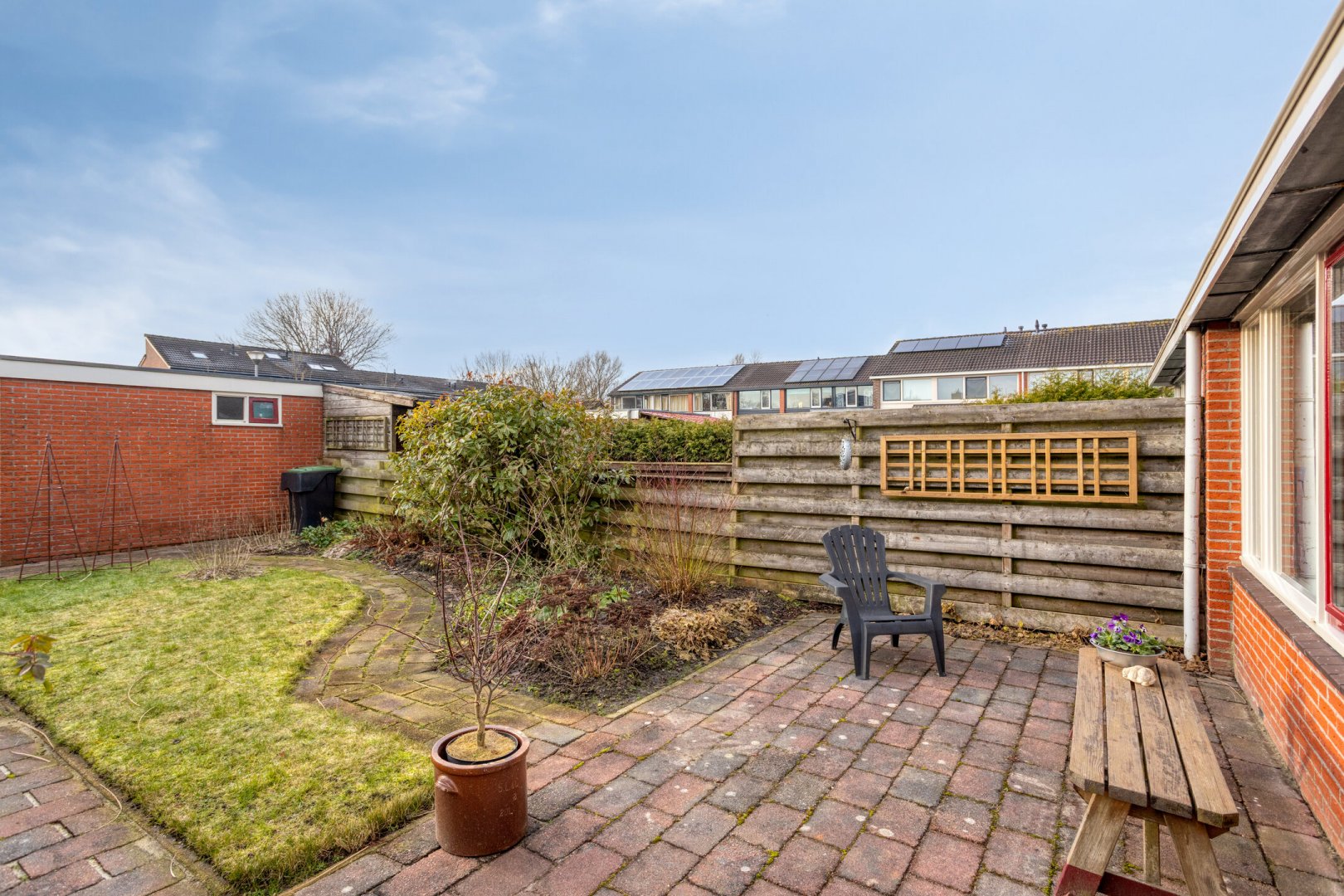 De achtertuin is gesitueerd op het zuiden en is tevens toegankelijk via een achterom. Er is een ruime stenen fietsenschuur aanwezig van 8m². Aan de voorzijde is er een ruime oprit waar één of twee auto's kunnen staan.