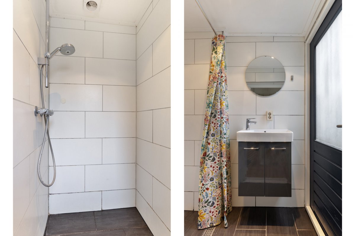 - De keuken is voorzien van de volgende inbouwapparatuur: koelkast, 4-pits gaskookplaat, combimagnetron, afzuigkap en wasmachineaansluiting. Tevens staat er een losse compacte vaatwasser.
