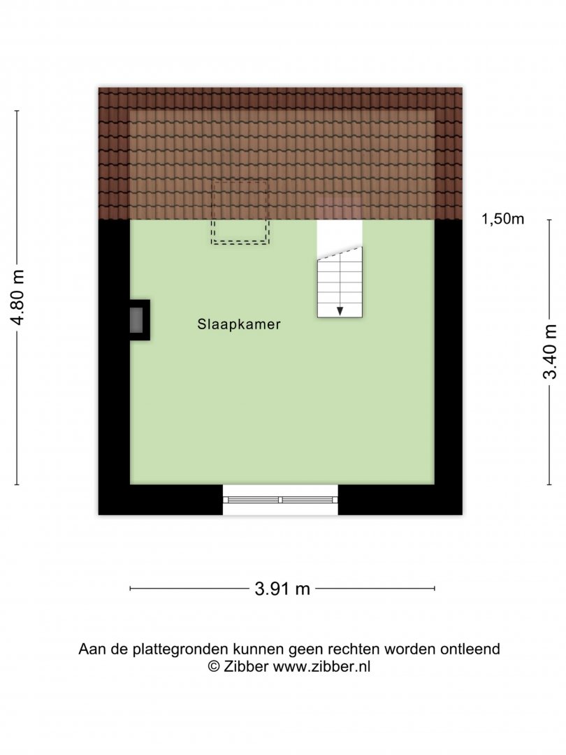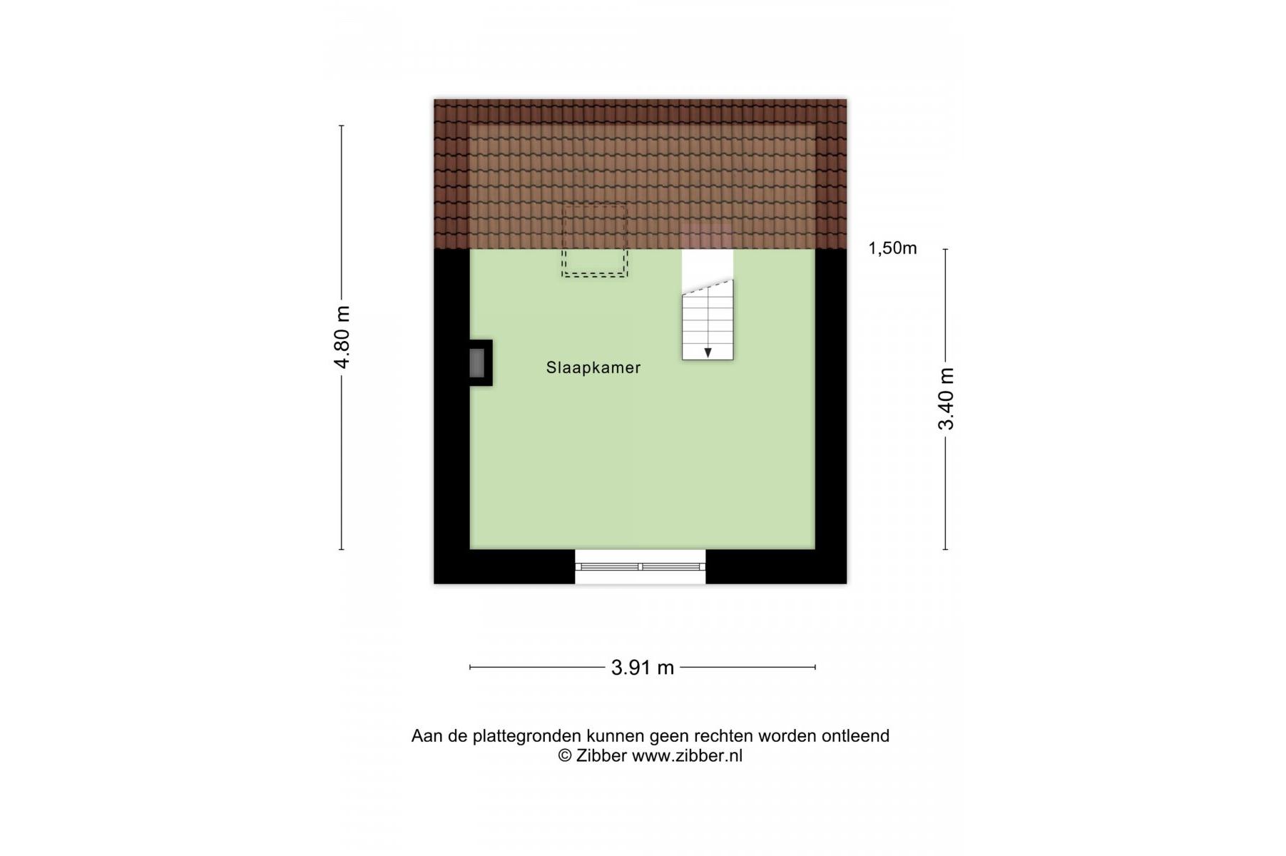 Eerste verdieping: open verdieping welke dient als slaapkamer. De verdieping is ruim 13m² groot.
